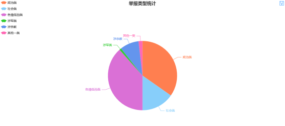 综合分析本月举报情况,淫秽色情类有害信息占比最大,其次为政治类举报信息以及社会类有害信息,分别占38.36%、36.21%以及14.22%。