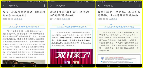 此外,一年一度的“双十一”购物节即将来临,利用淘宝等购物网站对消费者进行诈骗事件有增多趋势,我中心连续发布多篇提醒文章,向网民介绍木马病毒防御、网购防骗、个人私密信息保护等安全上网技巧。