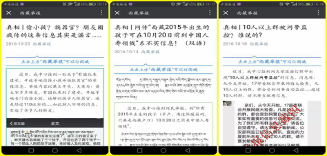 类似“偷抢小孩摘取器官”的谣言信息,通常会在全国以不同的版本流传,容易引发网民的恐慌心理。举报中心提醒,对于此类谣言信息,不要轻易相信甚至转发,应该关注各个权威媒体的跟进核实情况。我中心每个工作日都有针对性地对举报的谣言进行查证、辟谣,并通过各平台进行发布。关注“西藏举报”微博、微信、一点资讯和“西藏违法与不良信息举报中心”举报网站,第一时间识破身边的网络谣言,还能学习一些安全上网技巧!另外,广大网友在日常上网时,一旦发现涉藏违法、不良或不实信息,可以向我中心举报,只要举报信息属有效举报,就能获得相应的举报奖励。