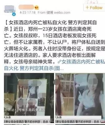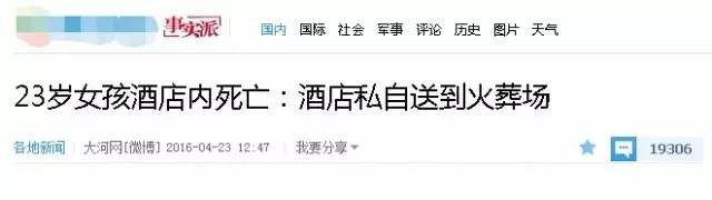 这两天,一则“花季女子在酒店离奇身亡,酒店老板竟私自火化尸体”的新闻,在各大新闻门户网站和媒体微博上热传,并很快引来了网友对酒店老板乃至警方的咒骂!然而,事情的真相,却不仅令人大跌眼镜,更令同样身为媒体人的耿直哥,感到心寒...今天,我就来和大家说说此事。