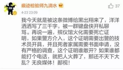但实际上,在当地警方发布这则情况通报之前,也有一些网友已经发现了死者叔叔的说法太过离奇,呼吁其他网友等待警方说法。因为在让火葬场焚烧一个人的遗体前,需要办理大量的手续,这其中就要有医院的死亡证明,在这种警方已经介入的案件中,更需要警方的证明,更要由死者家属书面申请。