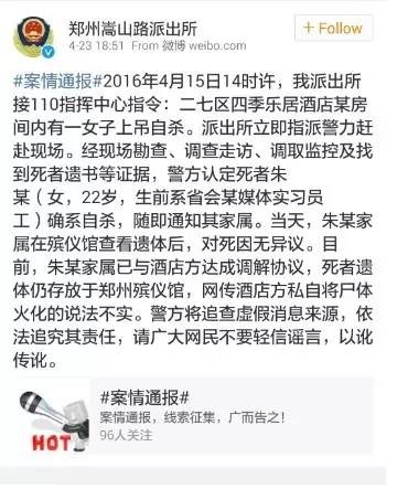 令人震惊的是,河南电视台却在其记者根本没有采访酒店或警方的情况下,就播出了这则新闻。而河南本地一家最大的平面媒体,同样在没有与警方核实的情况下,就直接将这则新闻转发到了网上。