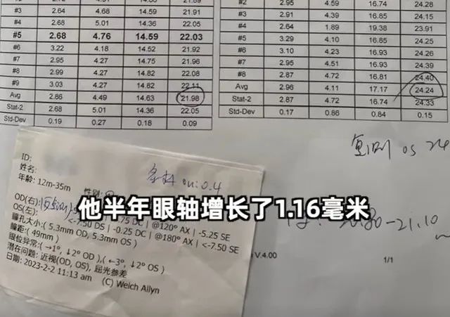 慕女士和她老公都近视600度左右,医生判断孩子是携带有高度近视基因,并携带病理性近视基因,在给孩子佩戴眼镜之后,她也给孩子进行了一系列的防控措施。但最近检查后发现,孩子左眼眼轴又增长了1.16毫米,度数至少又增长100度。
