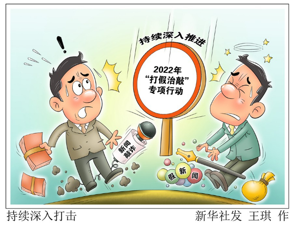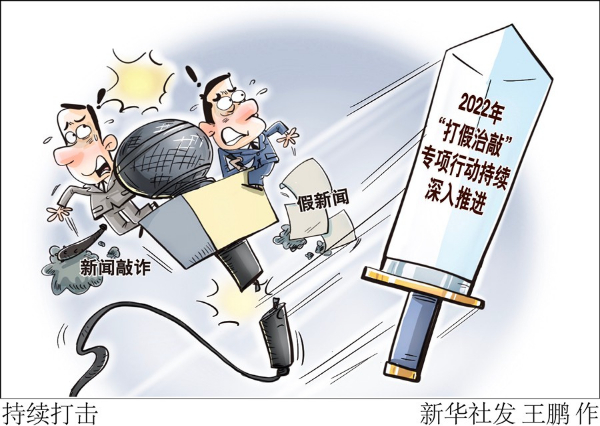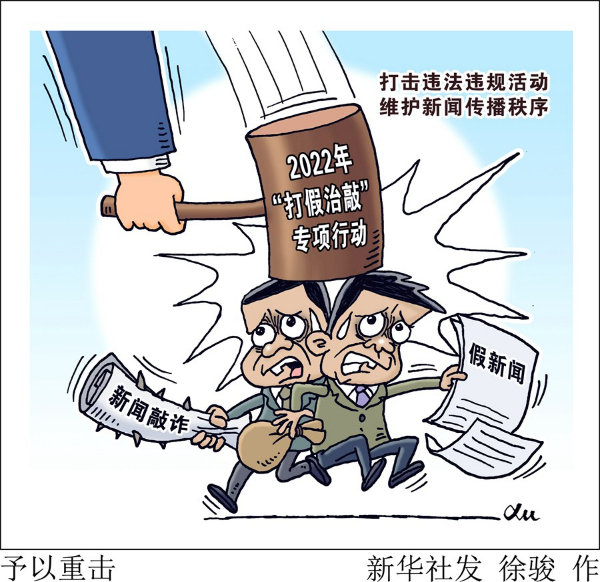 新华社北京2月15日电 题:打击违法违规活动 维护新闻传播秩序——2022年“打假治敲”专项行动持续深入推进