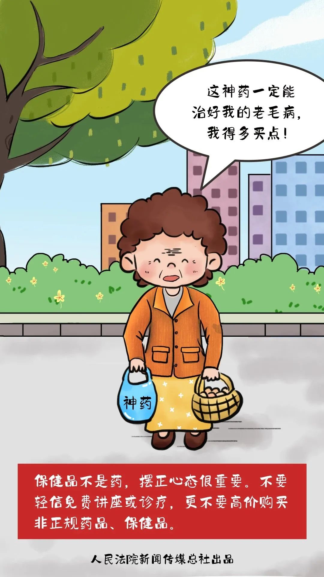 随着老年人身体机能衰退,对医药和保健品的需求与依赖逐渐增加。有些商家和个人以免费赠送小礼品等作为引诱,通过扫码、加为好友、进入聊天群等方式获取老人个人信息,创造机会接近独居老年人,通过培养情感或以利益、优惠来诱惑老年人进行不理智大额消费。近年来更是利用微商、直播等自媒体途径夸大虚假宣传食药等各类产品的功效。对这样的消费陷阱和宣传攻势,老年朋友更应注意防范。不要轻易将自己和家人的身份证号、住址、工作单位等个人信息告知他人,以免上当受骗。