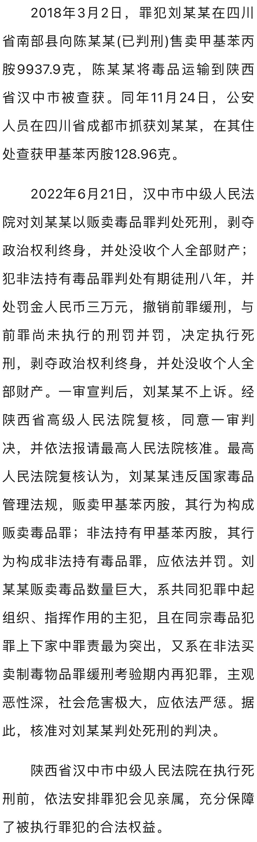 贩卖毒品近10公斤,刘某某被执行死刑!
