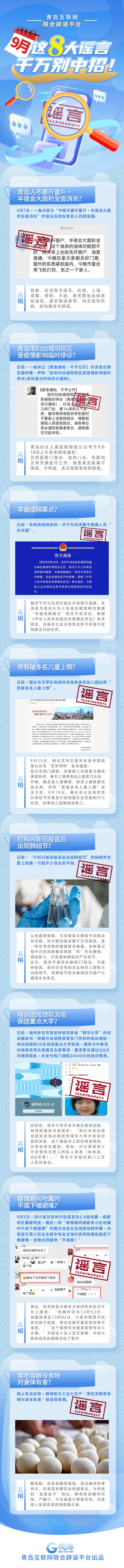 青岛互联网联合辟谣平台9月份辟谣榜单:9月这八大谣言,千万别中招!