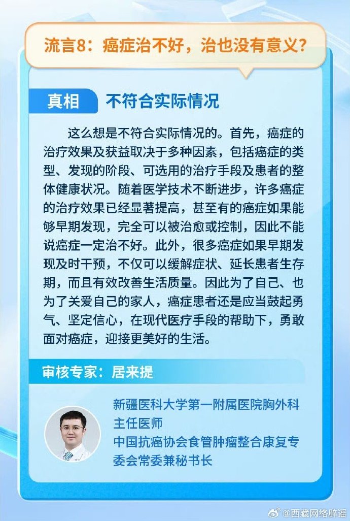 每年的 4 月 15 日~21 日都是全国肿瘤防治宣传周,今年是第 30 届全国肿瘤防治宣传周,主题为“综合施策,科学防癌”。“癌症”是一个让人很纠结的话题。一方面,大家总不愿主动提起,觉得不吉利;另一方面,大家又异常关心、担心和焦虑。也因此,关于癌症预防和筛查,历来是谣言重灾区。今天,科学辟谣联合中国互联网联合辟谣平台、“学习强国”学习平台、中国抗癌协会,针对 10 个广为流传的有关“防治癌症”的流言进行解读,快看看你中招了没?