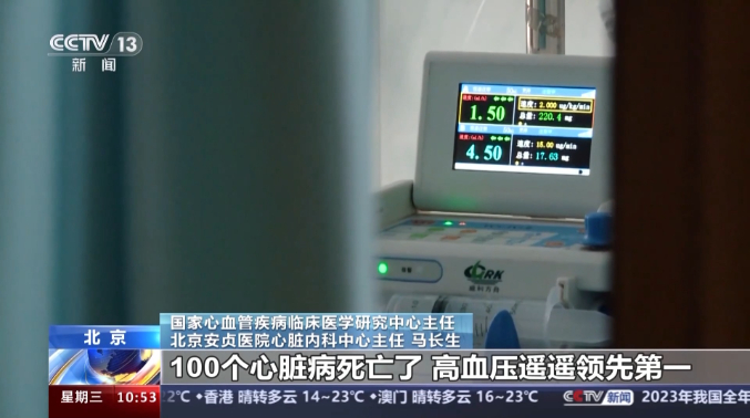 国家心血管疾病临床医学研究中心主任、北京安贞医院心脏内科中心主任 马长生:可改变的(危险因素)高血压排第一,高血脂排第二,高血糖大概排在第五或六。100个心脏病死亡了,高血压遥遥领先第一,占了可能20%左右。接下来血脂可能占12%、13%,血糖占5%、6%,但它是联动的,如果你单纯控制高血压还远远不够,还有百分之七八十的死亡(率)。所以我们必须强调三个都得管,最终冠心病、脑卒中才会控制下来,同时互相促进,要比单个一个一个管效率更高。