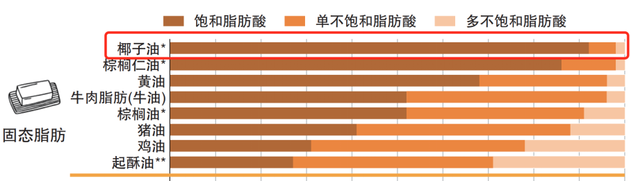 但实际上,椰子油不仅对心血健康没有益处,反而会增加心脏病的风险。椰子油中的饱和脂肪酸含量超过80%,远高于黄油、猪油等。