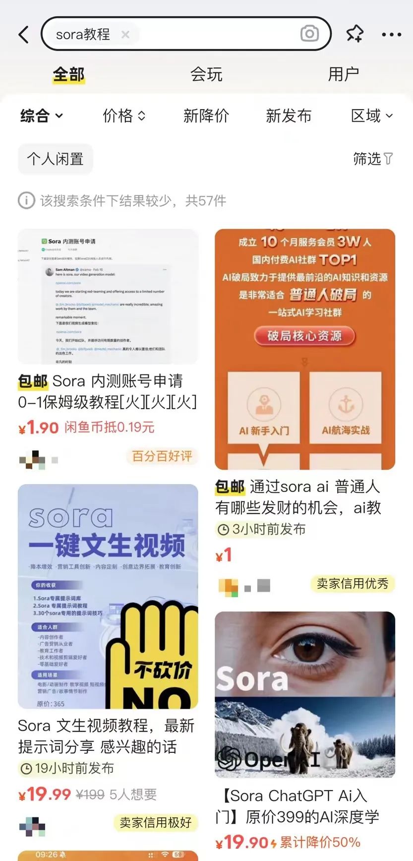 图片△某二手平台关于Sora课程的帖子